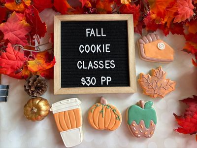 Included in the price per person is 5 pre drawn cookies (leaving out the guess work of where to fill in), 5-6 colours of pre bagged royal icing, a scribe to get those little details right, and a box to take your cookies home in!